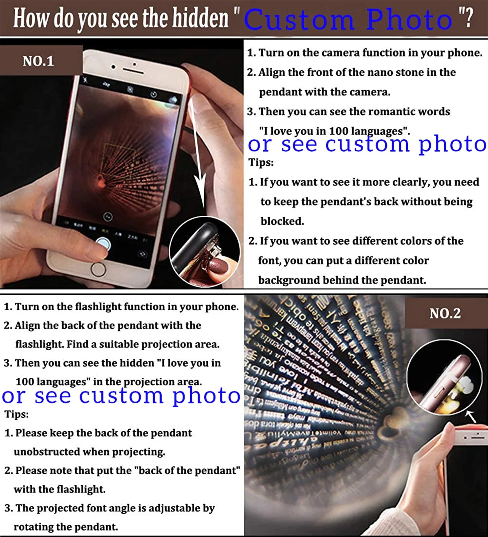 100 Languages "I Love You" Necklace puts your love in Nanotechnology LOVE STONE, projects I LOVE U in 100 different languages, the perfect gift for someone you love.